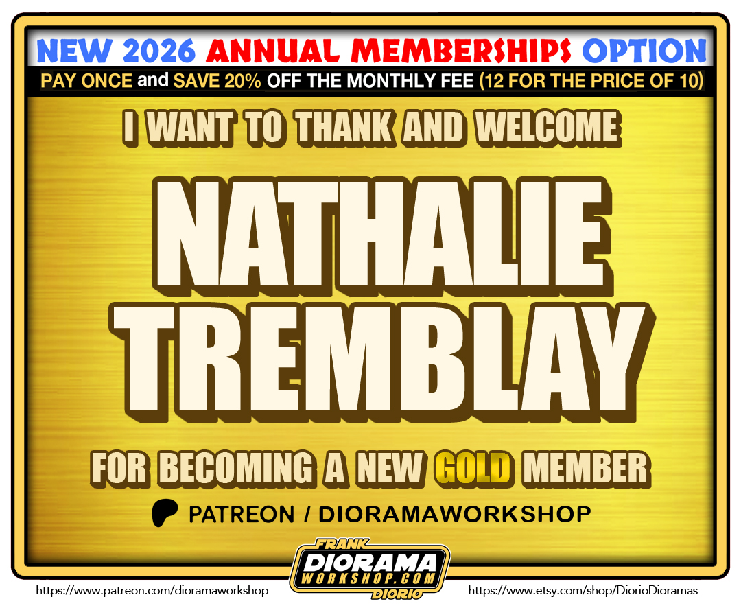 Nathalie Tremblay joins us in the Patreon Family 2026 Diorama Workshop GOLD tier. PLUS: 2026 also brings MORE PERKS and BIGGER Etsy Shop Savings. The regular Bronze $3 – Silver $5 and GOLD $10 a month remain but NOW Patreon has UNLOCKED the ANNUAL MEMBERSHIP OPTION – If you select this mode of payment, you will receive an INSTANT 20% OFF giving you 12 months for the PRICE OF 10 !!! PLUS your Etsy Discount gets upgraded a tier as well. It’s a WIN WIN SITUATION 🙂 Scroll down to see more details. If you want to join, click the image link below and Just select the tier that best suits your needs and come Join the Diorama Workshop family today.
